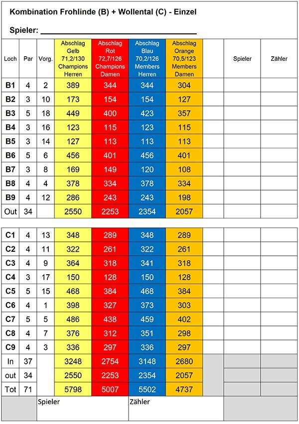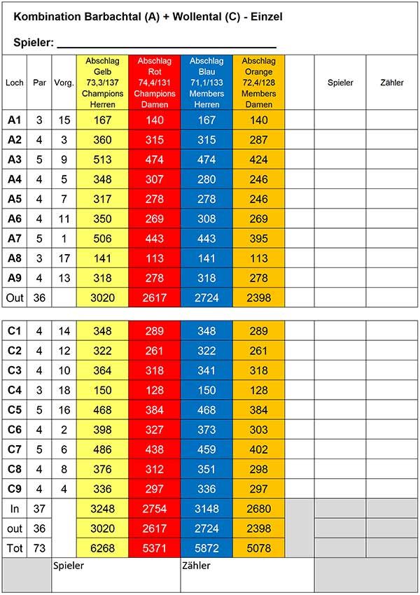 Unsere Scorekarten 18 Loch